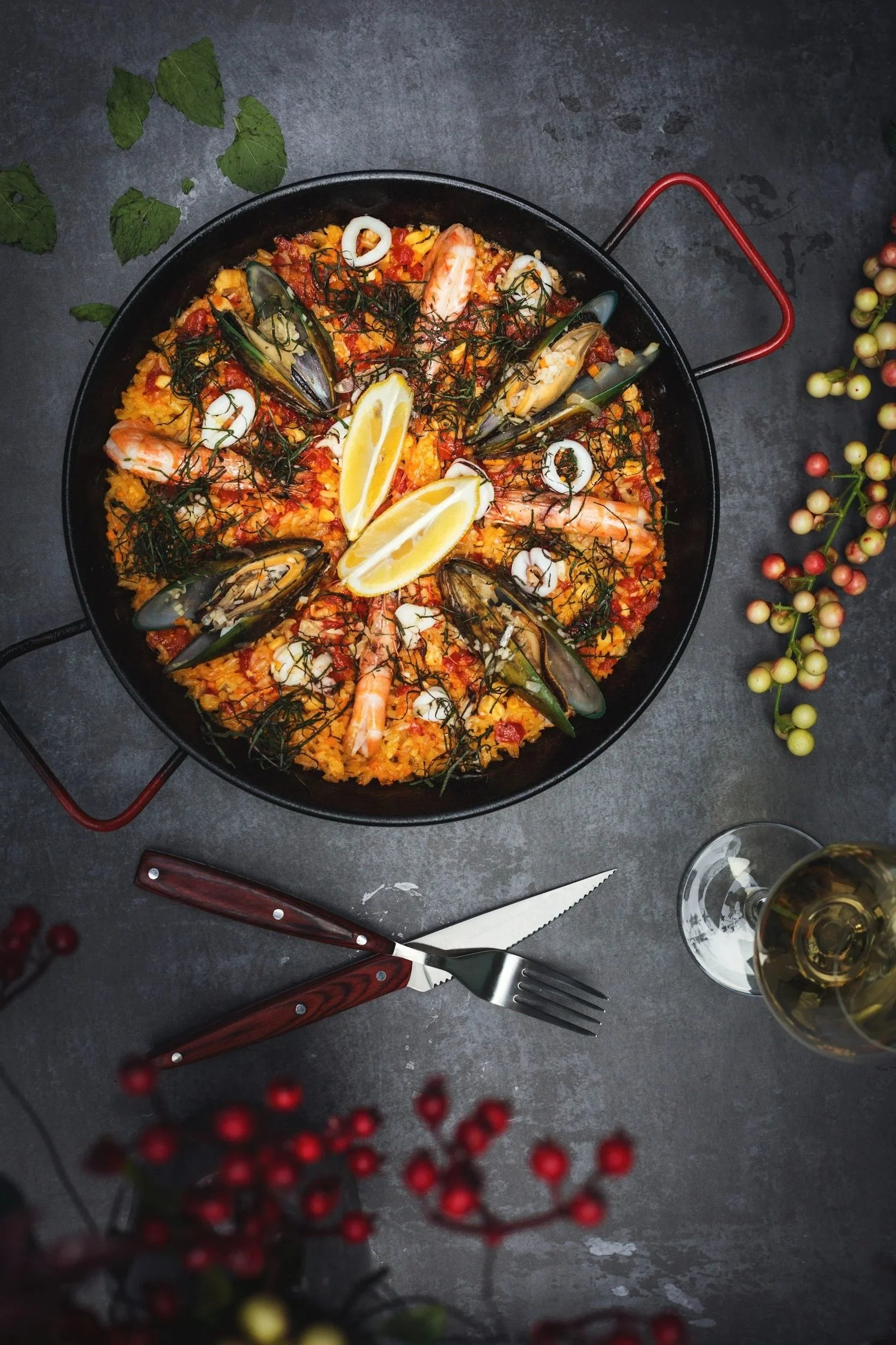 Catalana di mare, frutti di mare con frutta fresca di stagione.